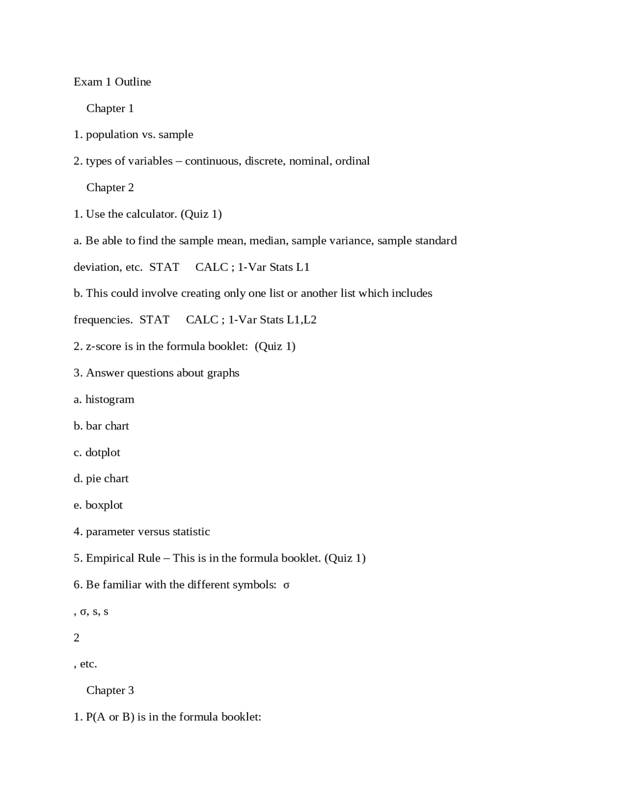 Exam 1 Study Guide For Elementary Statistics And Probability Math 210 Study Notes Probability And Statistics Docsity